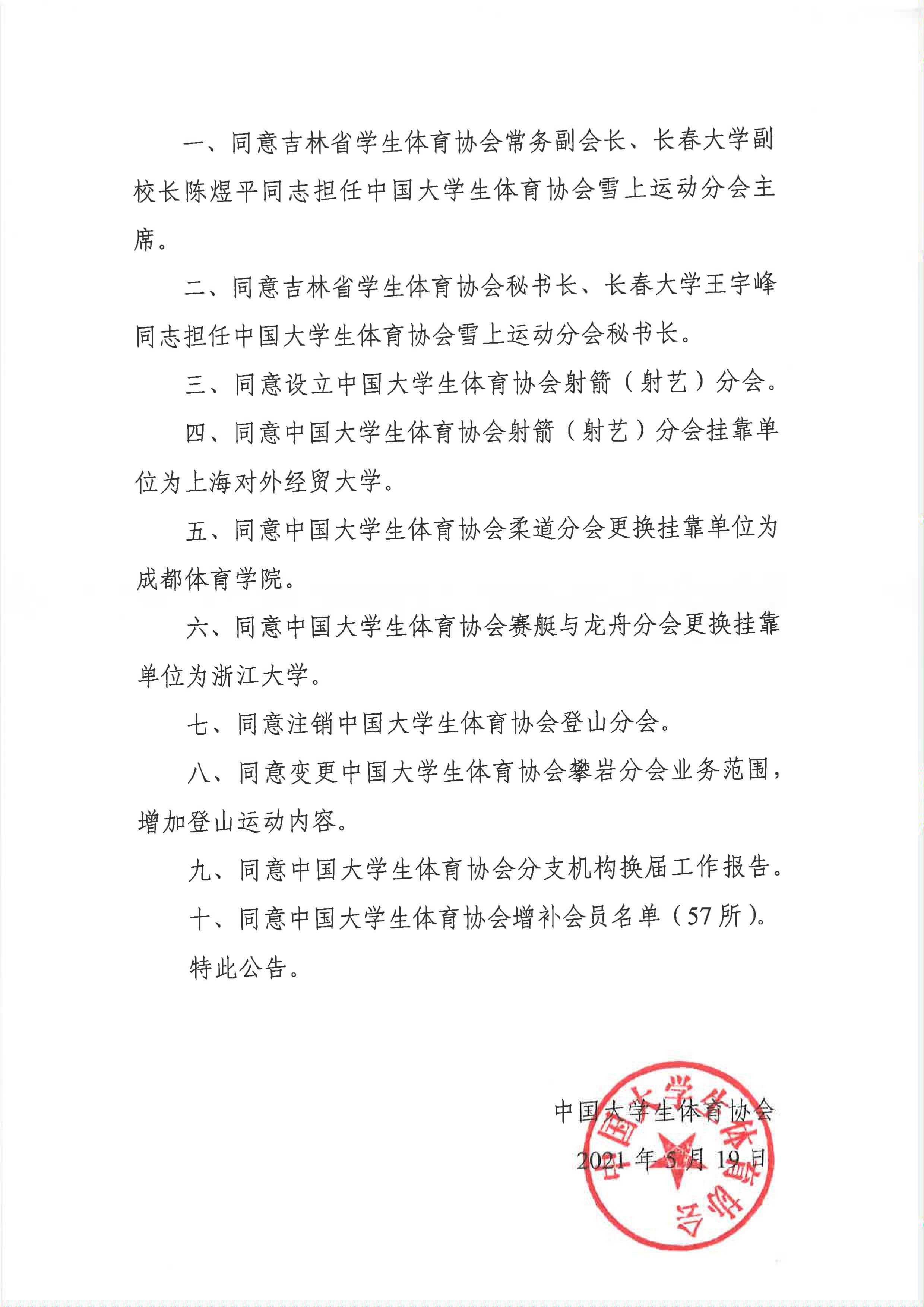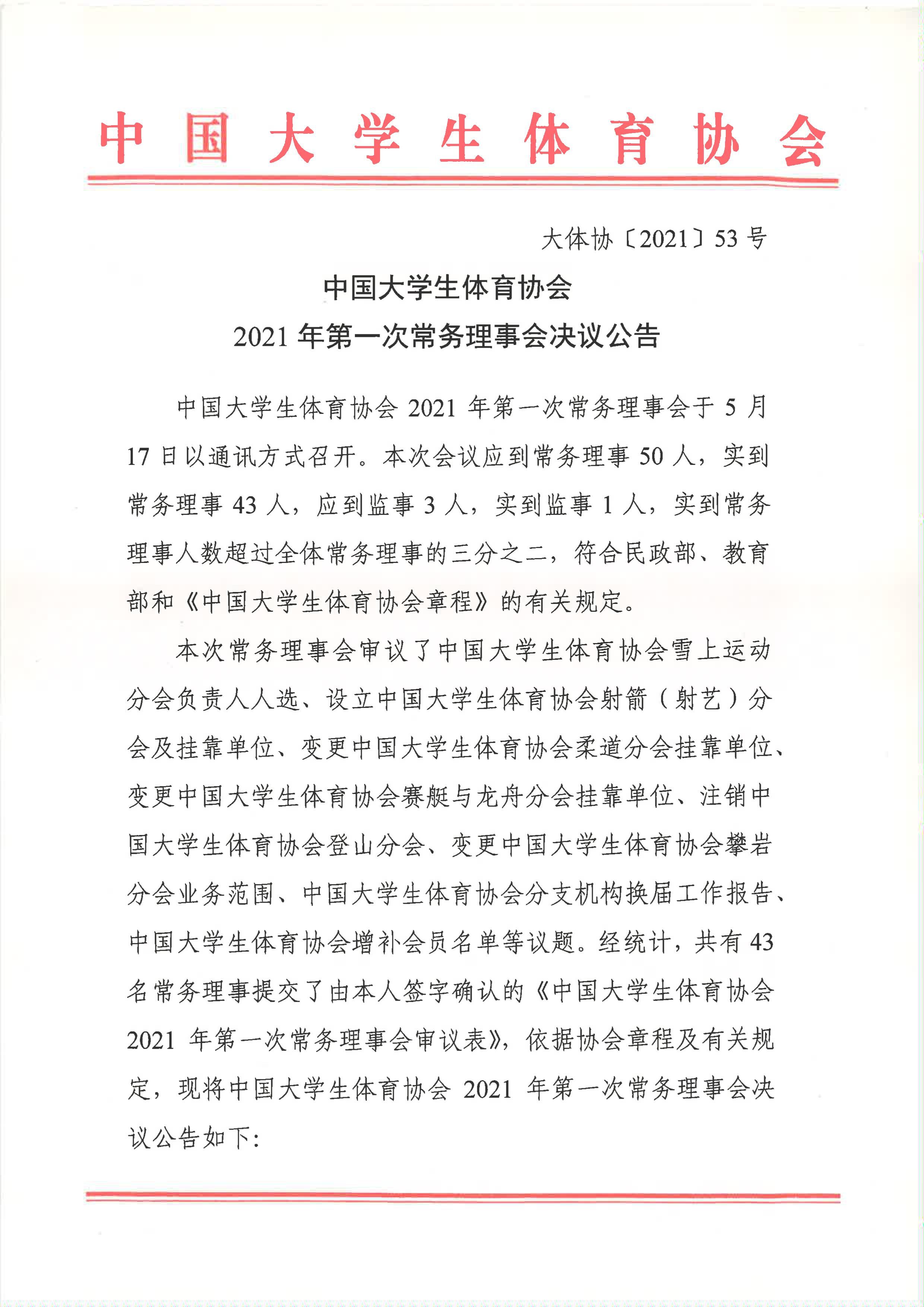 中国大学生体育协会2021年第一次常务理事会决议公告