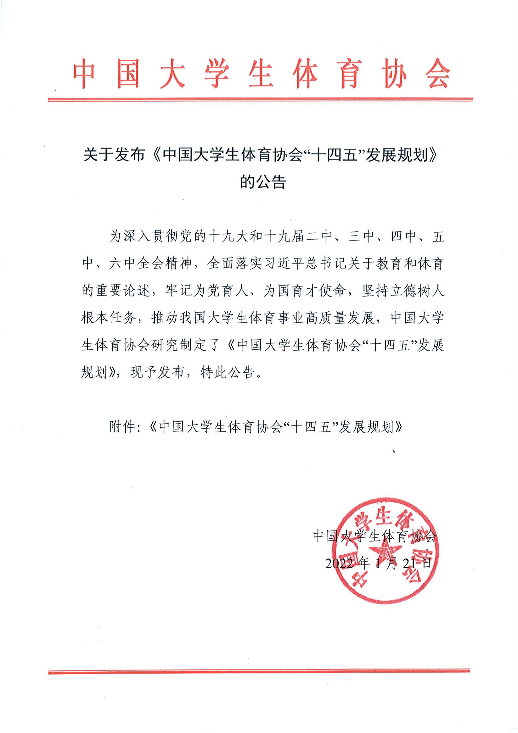 关于发布《中国大学生体育协会“十四五”发展规划》的公告