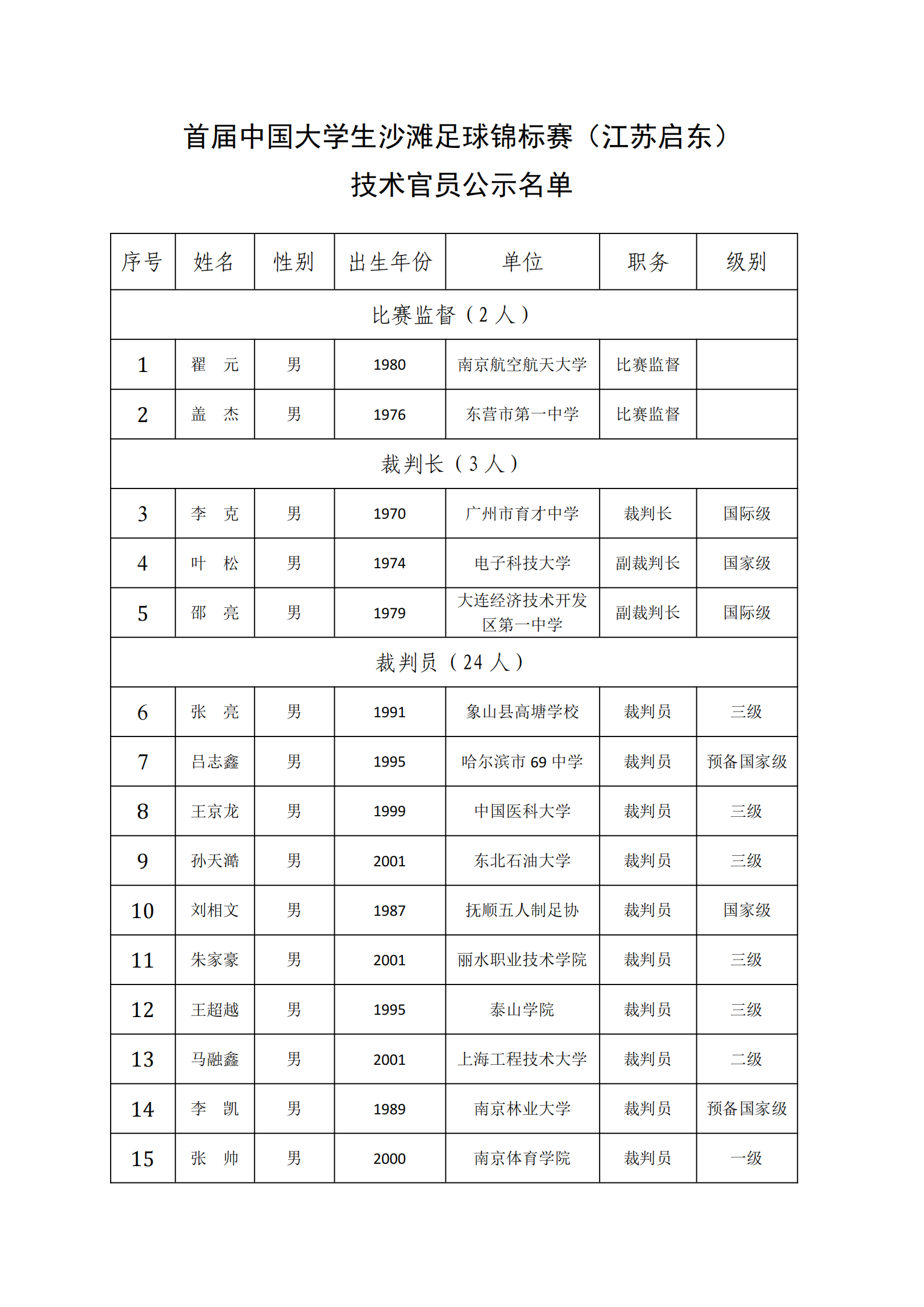 首届中国大学生沙滩足球锦标赛技术官员公示名单