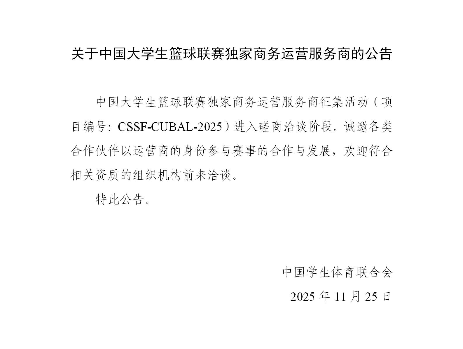 关于中国大学生篮球联赛独家商务运营服务商的公告